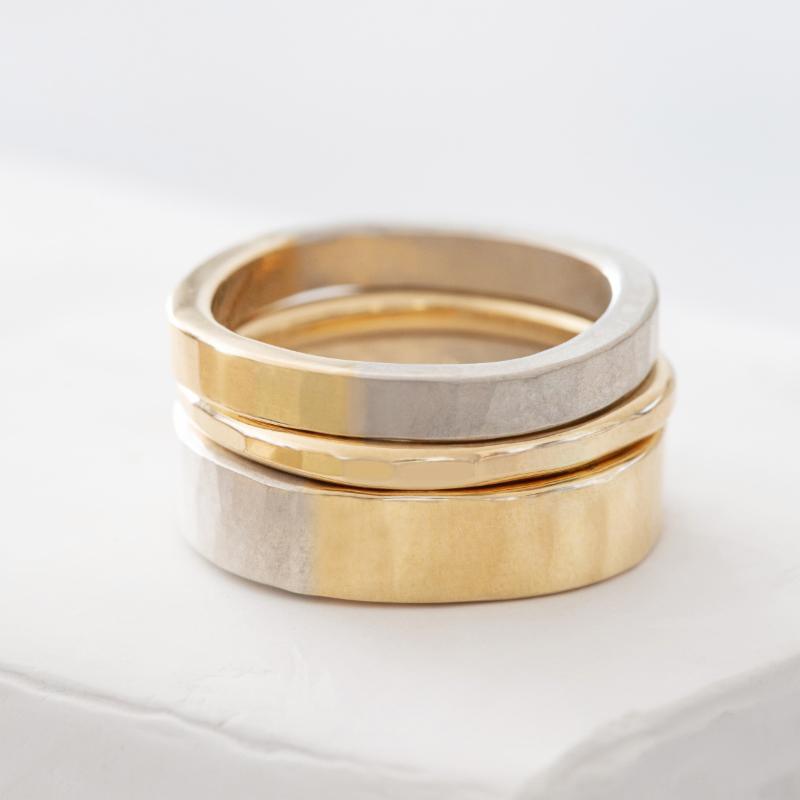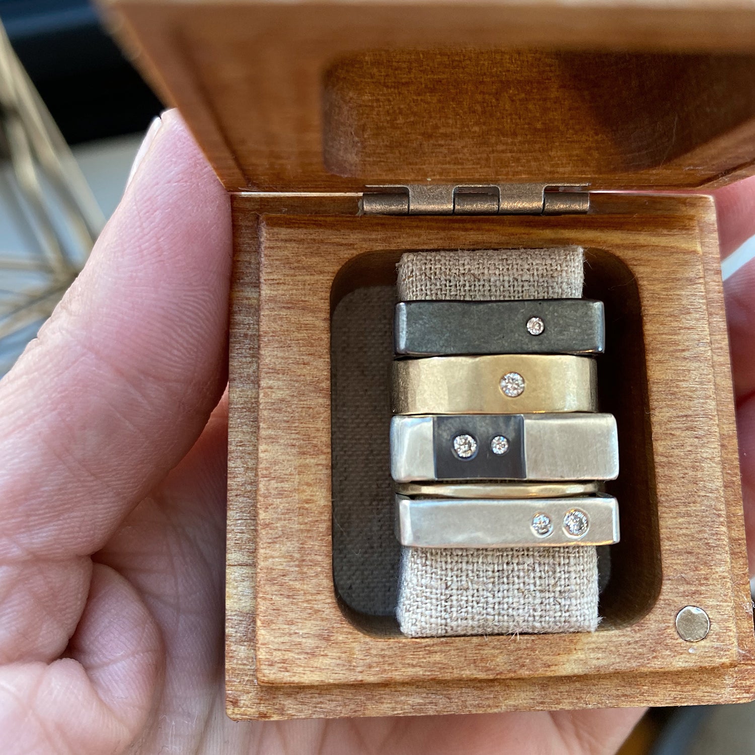 Need inspiration? Browse our pre-designed special occasion bands, stack sets, and solid jewelry. Or, book an appointment so we can work together to find or create something extra special just for you!